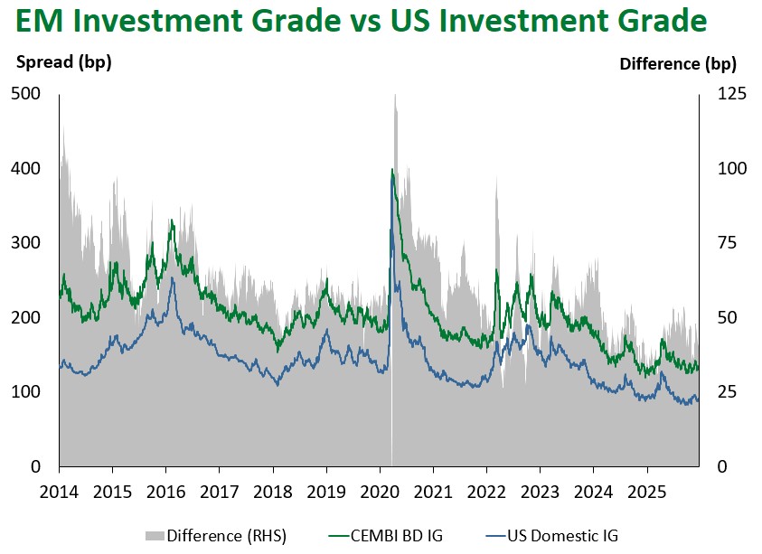 Source for graphs: Bloomberg, JPMorgan, Gramercy. As of Dec. 19, 2025.
